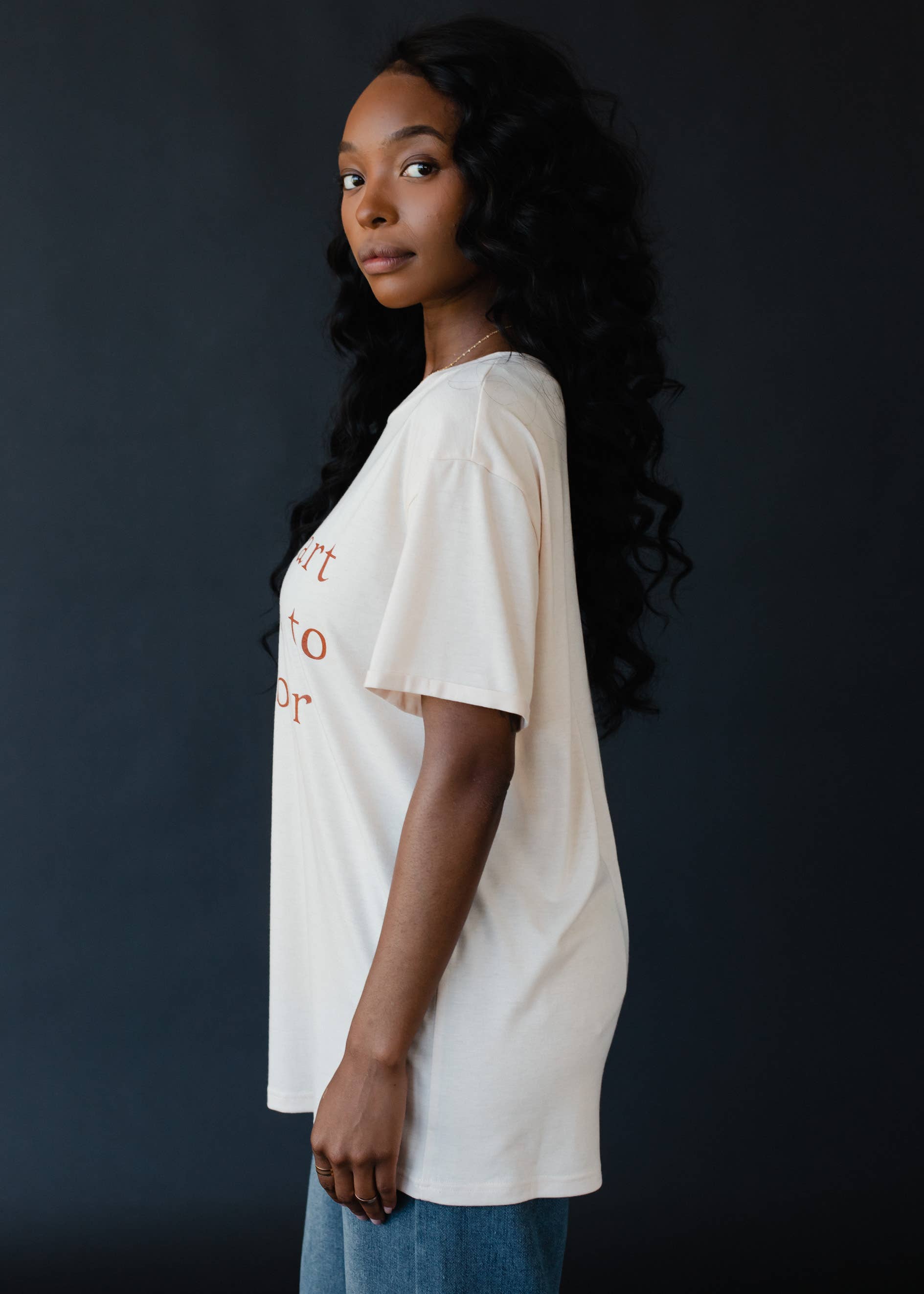 Tan graphic tee Rust "My heart belongs to October" text 60% Polyester / 35% Rayon / 5% Spandex Pre-pack 2-2-2-2 (S-XL)