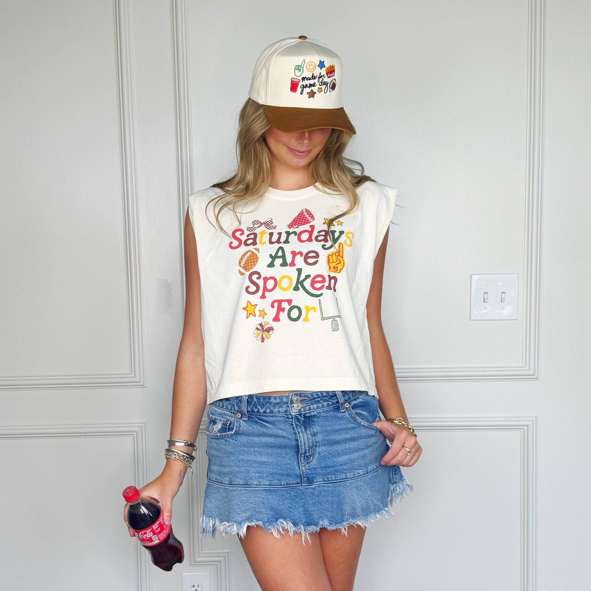 Show your game day spirit with the Saturdays Are Spoken For Tank. Designed for comfort and style, this tank lets everyone know your Saturdays are reserved for football and fun. Perfect for tailgates, watching the game, or casual weekends, it keeps you cool while cheering on your team.