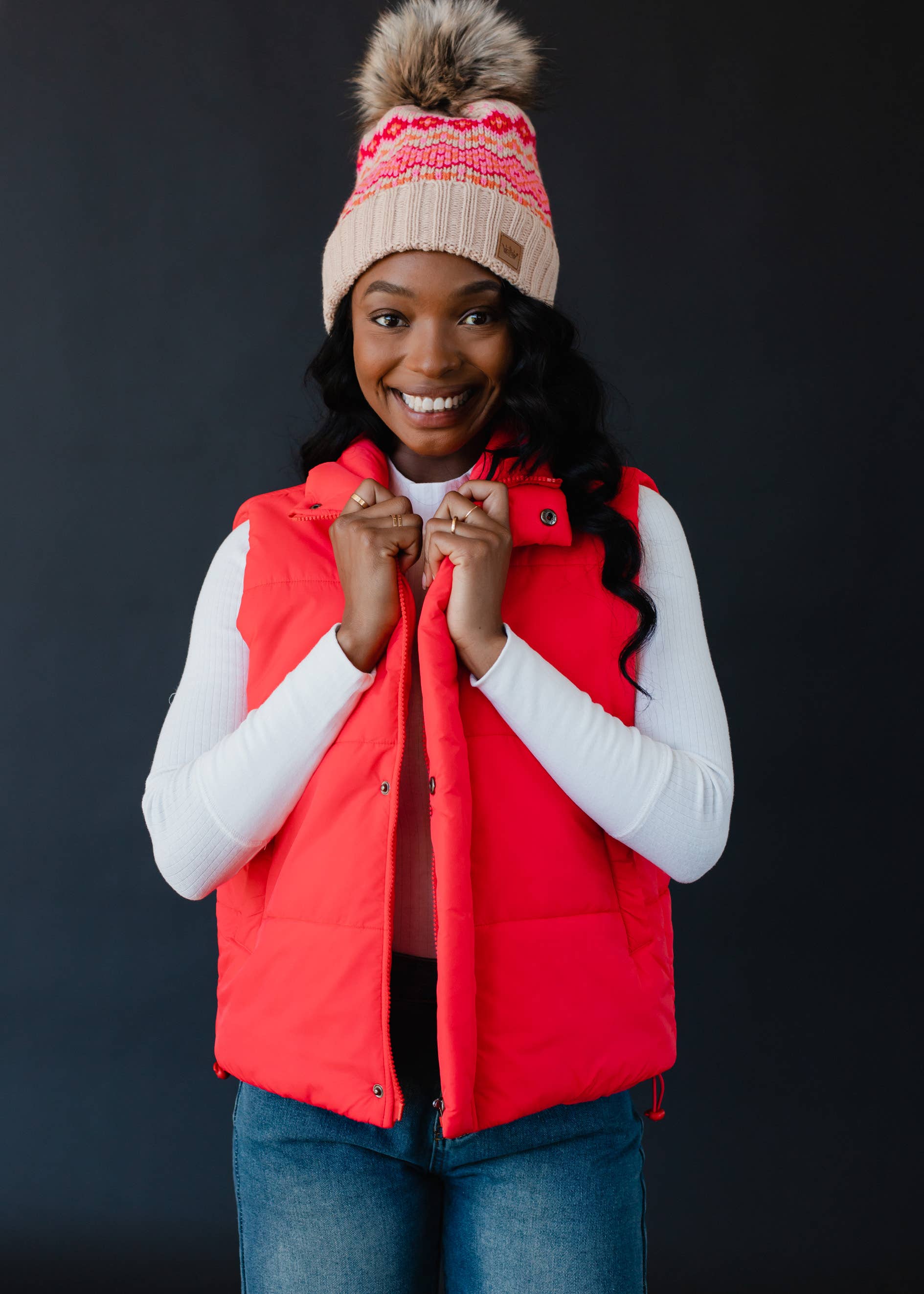 Watermelon vest Zipper & snap closure on the front Two side pockets 50% Nylon / 50% Polyester