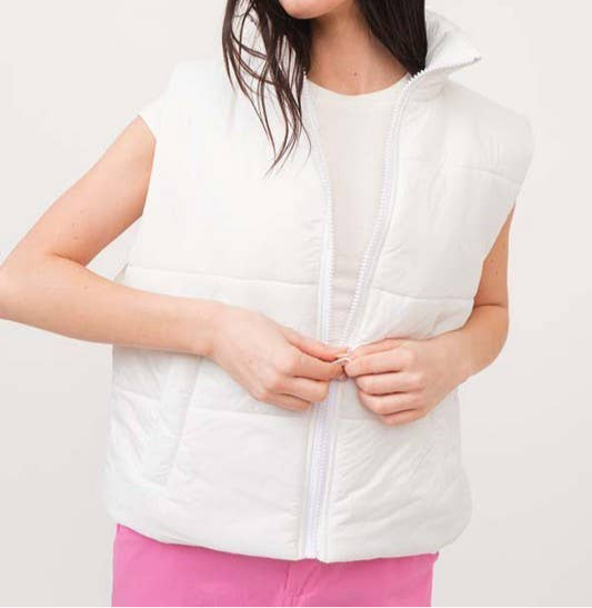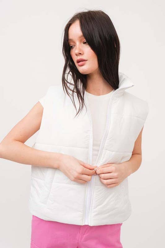 Zip Up Padded Vest: WHITE